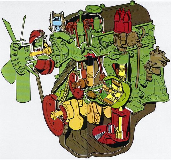 Prachtige doorsneetekening van de 850 cc boxermotor uit de DAF
