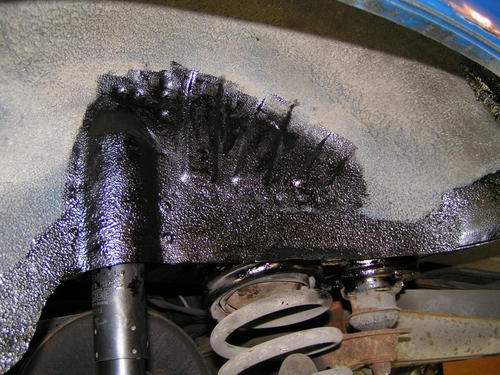 in de rechter bovenhoek van deze wielkast zat een dikke korst bodyschutz, die