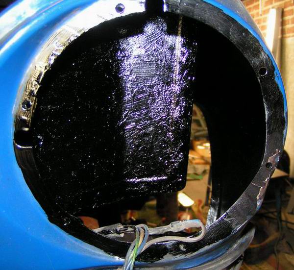 De koplamppot is ook behandeld met noverox roestomvormer, en zwarte primer.