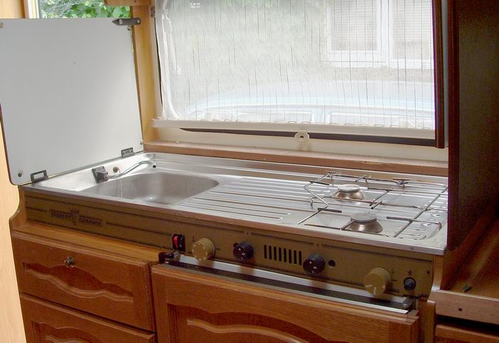met 2 bagageluiken eronder en een kruidenkastje ernaast. Wieldoppen zijn in